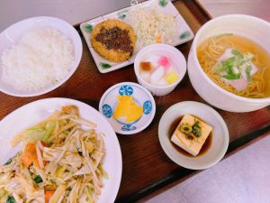 【本日の日替わり】豚肉と揚げ豆腐と野菜の炒め