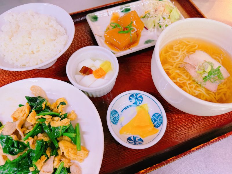 【本日の日替わり】豚肉と法蓮草の玉子炒め